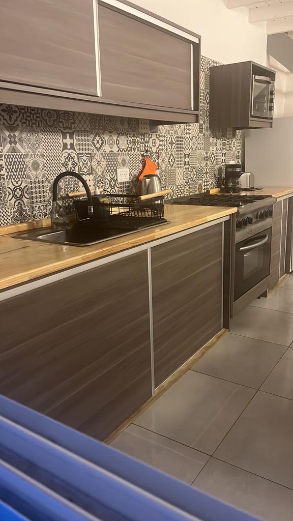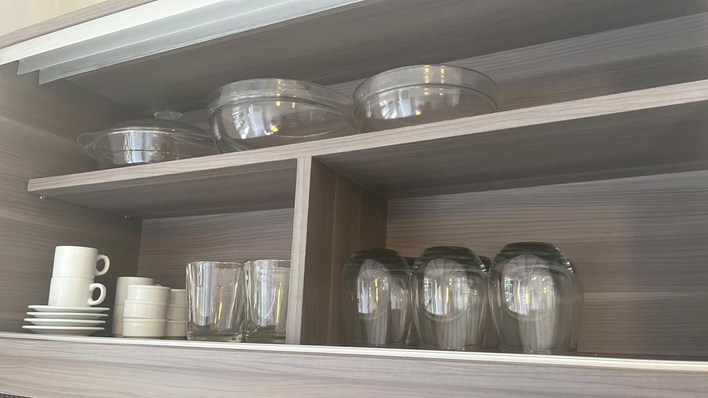 -Pava eléctrica tostadora y vajilla -Baño con ducha y mampara de vidrio